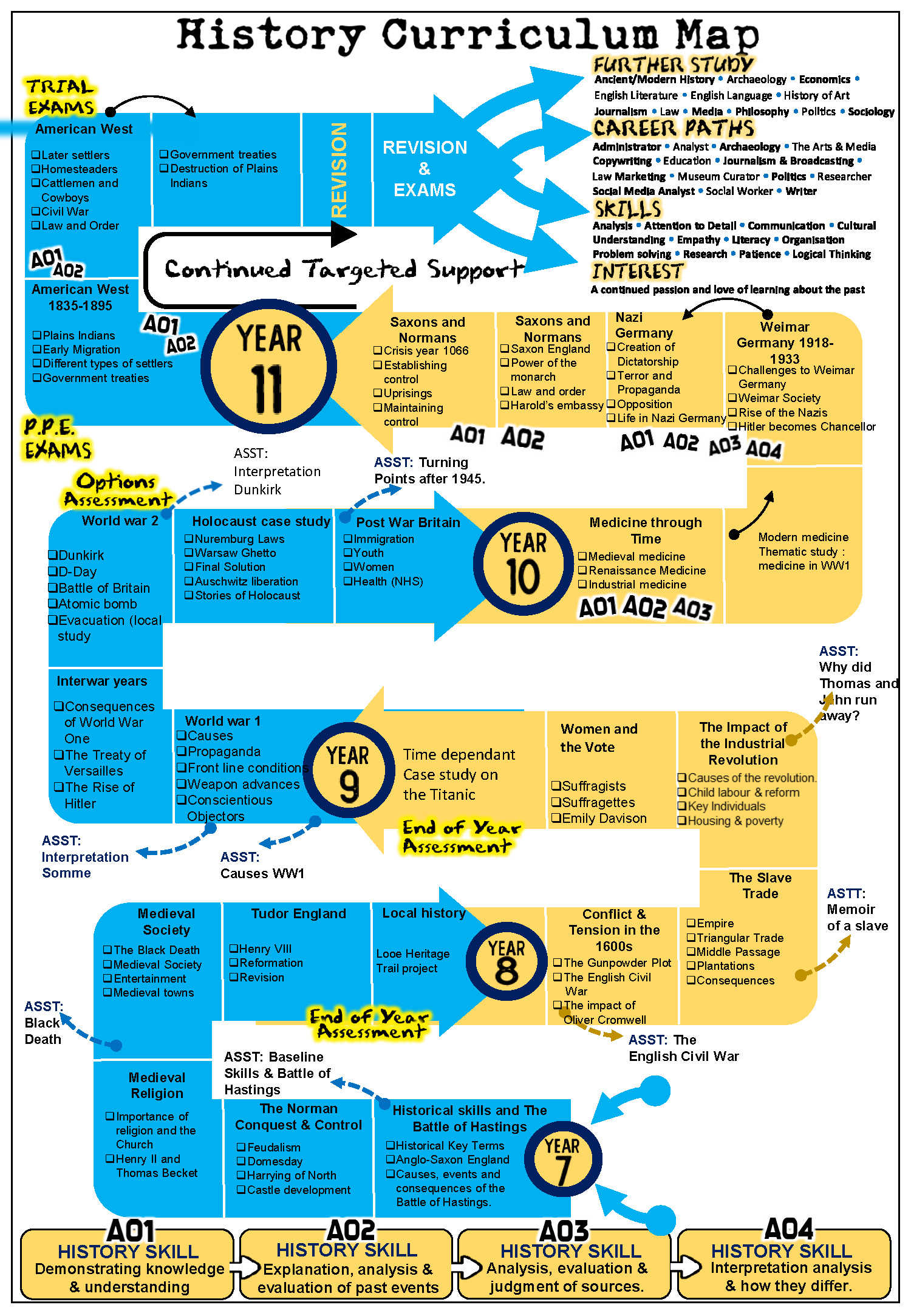 Our History curriculum is designed to inspire curiosity, develop critical thinking, and empower students to understand the complexity of the past and its influence on the present. Through a carefully sequenced journey from Year 7 to Year 11, we aim to ensure that every learner: